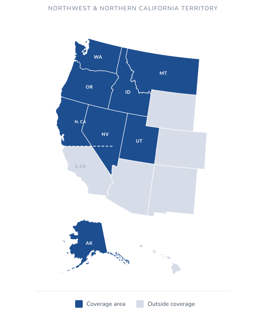 We are a West Coast company and our reps cover Washington, Oregon, Idaho, Montana, Alaska, Northern California, Nevada, Utah.
